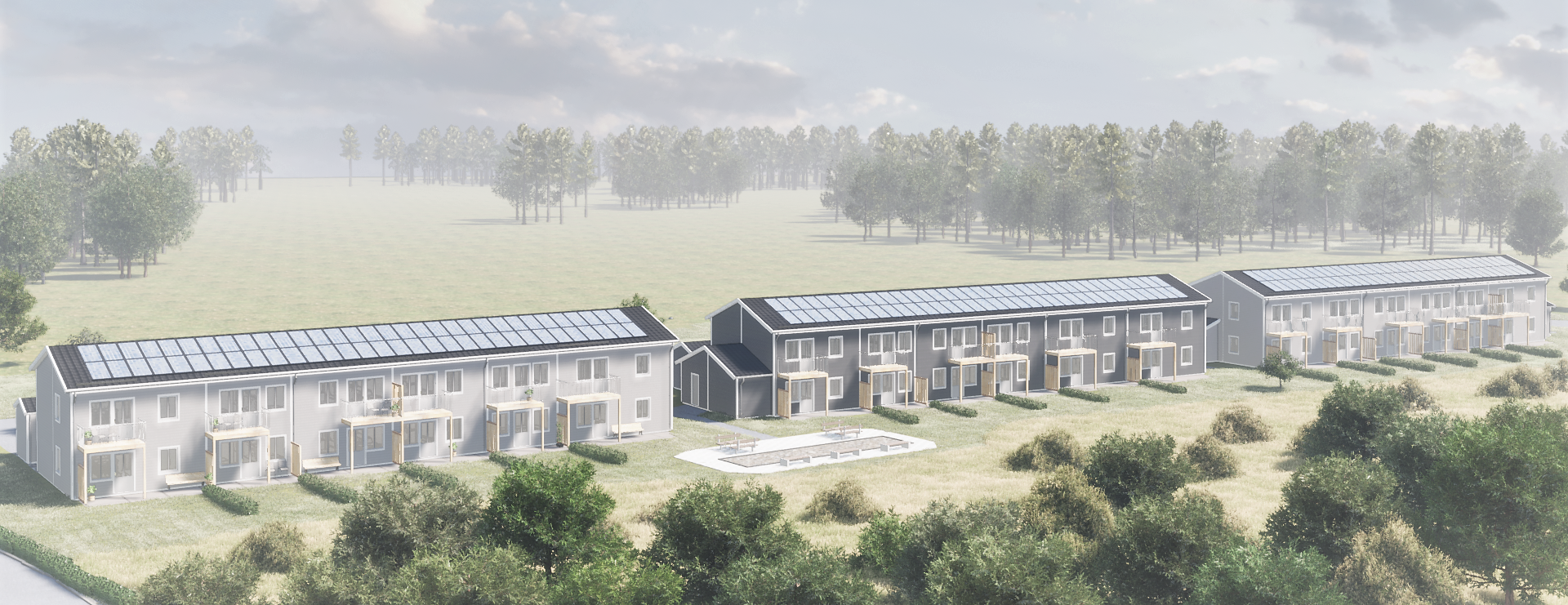 Svensk Husproduktion AB har byggt husen ovan grund på totalentreprenad.